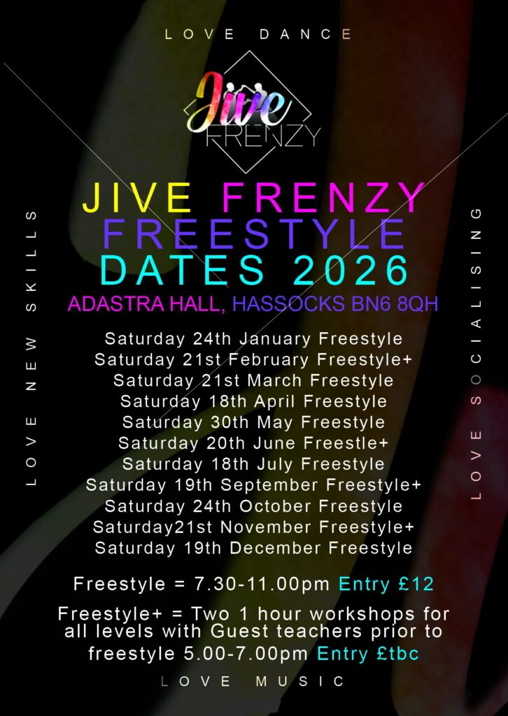 This is the heart of the Jive Frenzy social scene. Here you will find all of our Freestyle events across Modern Jive, West Coast Swing and our unique Hybrid nights, along with special workshops designed to elevate your dancing. Whether you are looking for a relaxed evening of great music and friendly faces, or an energetic night packed with variety and connection, this is where you can see what is coming up and book your place on the dance floor.